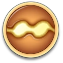 Es un sello dorado tallado con el simbolo de armoniosas lineas.