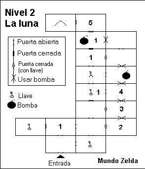 Primero ve al este y destrulle todos los guerreros Stalfos. Tu puedes encontrar la llave. Camina, ve atras y ve al este, destrulle todos los vampiros y toma la llave que esta en la izquierda. Camine hacia atras, pero no abras la puerta. Salga del calabozo y entra otra vez. Se abrira la puerta del norte, así que acabas de ahorrar una llave. Ve 2 veces al norte y toma la clave, y después recorre al este. Aquí encontrarás el compás. Puedes destruir la pared que esta en el norte con una bomba. Si no tienes bombas, camina hacia el oeste, norte y este. En esta pieza encontraras el mapa. In this room you should find the map. Camina al norte, toma la llave y camina de nuevo al norte. Camina al este para encontrar el arco, pero ten cuidado con las trampas. Después que tienes el arco, camina atrás a la pieza para encontrar el mapa. Ve al este, destruye a todos los Goriyas y encuentra el Boomerang. Camina al este, toma la llave y trata de no ser capturado por los Wall-masters. Camina al norte y encontraras al jefe del calabozo, Aquamentus, que custodia la Trifuerza. Si tienes bombas, usalas contra el. O usa la espada para atacarlo. Ponte lejos cuando use su ataque de bola de fuego. El escudo no te proteje de ese ataque. Después de derrotarlo, camina hacia la derecha y toma la Trifuerza.