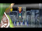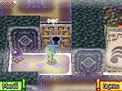 Dentro del templo, podrás hablar con esqueletos que corresponden a personas que han entrado anteriormente. Sigue recto y pasa por la puerta que hay al fondo, allí encuentras una gran sala con baldosas de dos colores. Si no estás encima de las baldosas moradas irás perdiendo energía. Al avanzar un poco encontrarás a Linebeck encerrado tras unos grandes pinchos que salen del suelo.