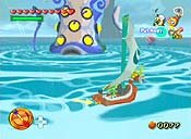 23 .- Isla de Tingle (C-3): Dirígete a la zona norte de la isla para ver un grupo de gaviotas juntas. Aproxímate a ellas y verás que aparece un calamar gigante. Dale a todos lo ojos que tiene con el Bumerán o el Arco, procurando no acercarte demasiado, y al derrotarle conseguirás que aparezca el cofre con la pieza de corazón.